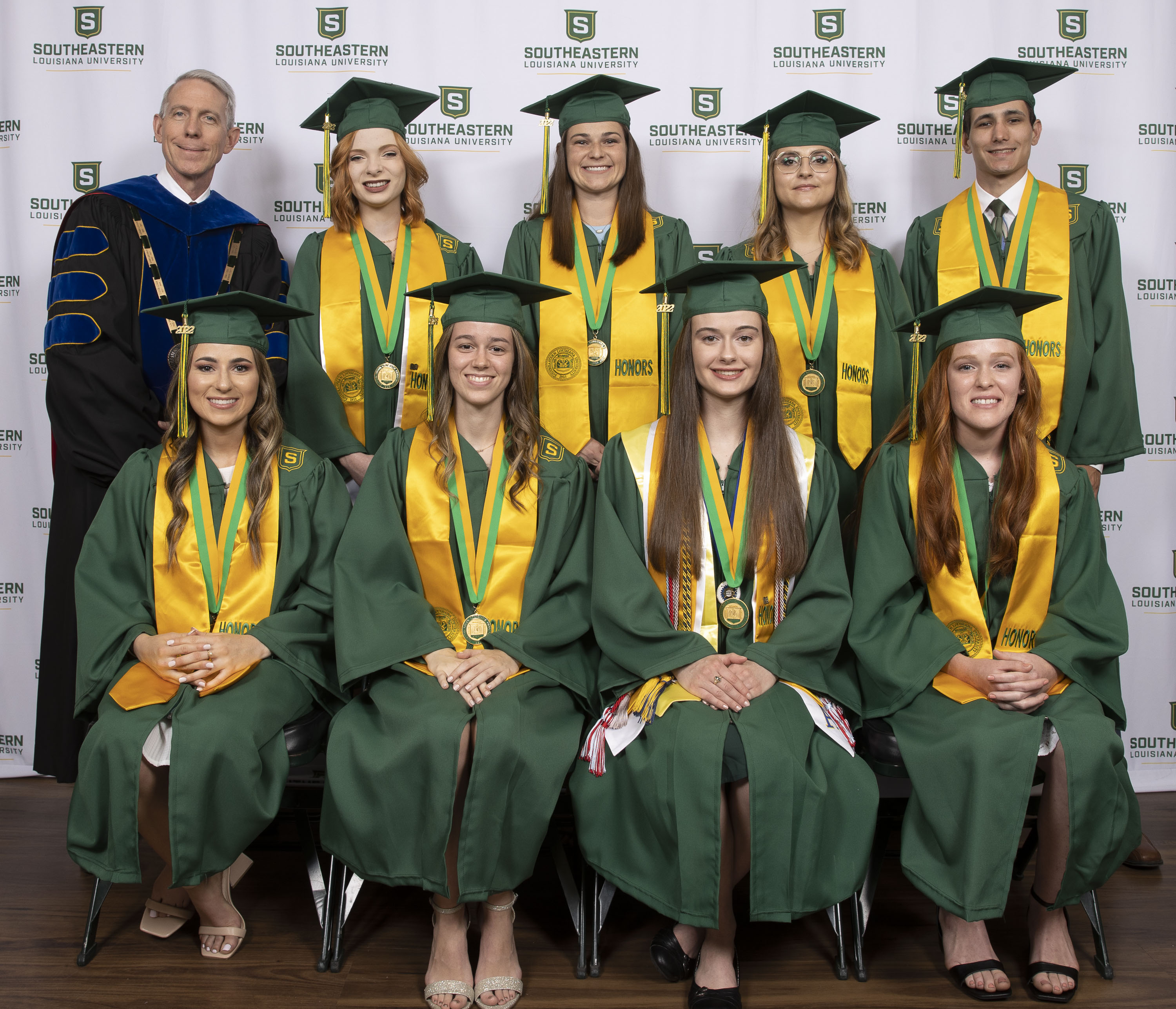 Also, Irene G. Mervich, Health Systems Management; Gabrielle L. Messina, English; Kirkland P. Moore, Business Administration; Gabriel L. Nance, Information Technology; Hallee M. Nichols, General Studies; Troy A. Nisby, Jr., Criminal Justice; Madison L. Norton, Health Sciences; Hannah C. Perrier, Nursing; Zachary M. Pisciotta, General Studies; Errol Raymond, Communication; Justin B. Runnels, Kinesiology; Dylan S. Ryan, Supply Chain Management; James P. Schroeder, Sport Management; Theresa A. Seruntine, Social Studies Education; Melanie M. Shepherd, Early/Childhood Education Grades PK-3; Olivia J. Singletary, Computer Science; Evan S. Smith, Accounting; Citlalic C. Snell, Biological Sciences; Halle M. Suarez, Management; Shayne A. Tranchina, Accounting; Timothy M. Upton, Supply Chain Management; Noah T. Varnado, Communication; Cameron T. Vickers, Engineering Technology; Maya E. West, Criminal Justice; Faith A. White, Accounting; Rebecca N. Willerton, Biological Sciences; Andrew T. Williams, Psychology;